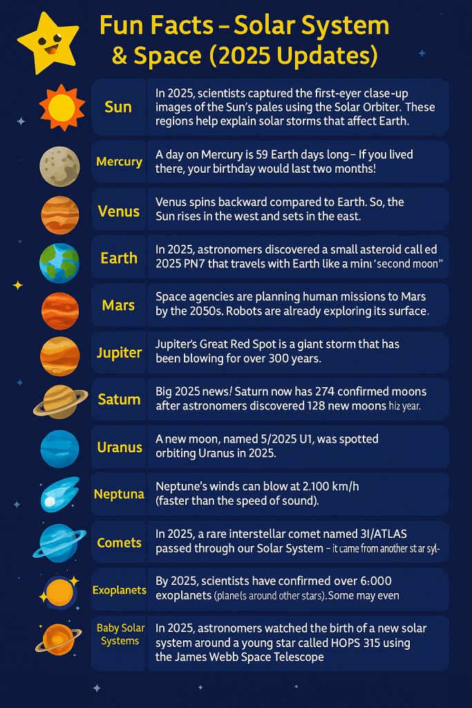 โœจ Fun Facts Table โ€“ Solar System & Space (2025 Updates)